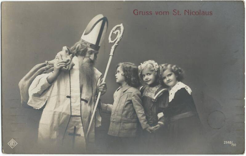 Tot halfweg de 19de eeuw werd er eerder over Sint-Nicolaas gesproken en gezongen. Hij was bijvoorbeeld niet zichtbaar in het straatbeeld en kwam zeker ook niet zomaar op huisbezoek. Hij was eerder de onzichtbare kindervriend, de strenge opvoeder en huwelijksmakelaar. Pas rond 1845 treedt hij op in het openbaar, gekleed in zijn bisschopskleren. Nog later wordt hij vergezeld door Zwarte Piet, die in eerste instantie de rol van bestraffer en boeman op zich neemt. Daarvoor was het eigenlijk Sinterklaas zélf die met de roe rondliep en de boeman was.